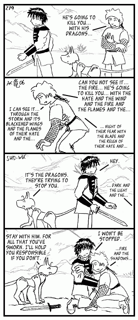 Lots of little things wrong with this one. I hate Roland in panel 3, I really should redo it. But the overall effect is good enough, maybe. Maybe... I'm really getting worried about this storyline (and future ones). My mediocre abilities really don't come close to the pictures in my head...