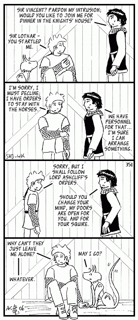 Not happy about Vincent's expression in panel 3. Panel 4 is fine, though. I didn't mean for him to turn into emokid!Vincent ... at least he doesn't dress the part.